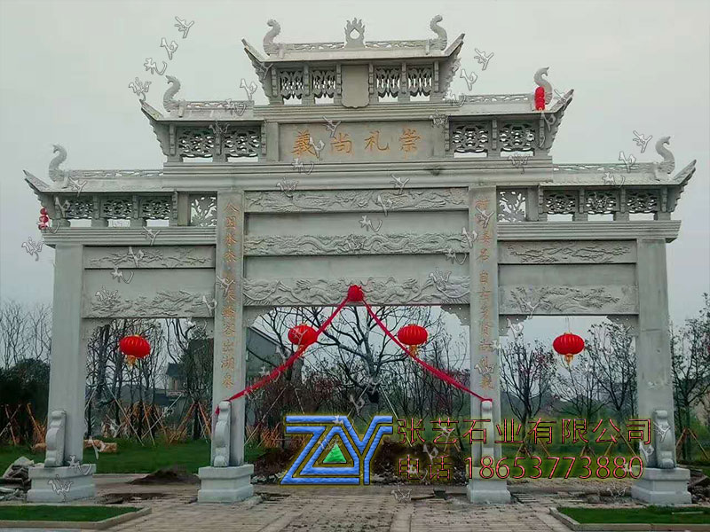 芝麻白三門石雕牌坊